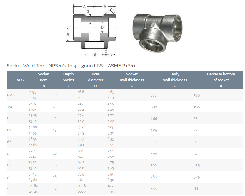 SOCKET WELD TEE DETAILS AS BELOW: